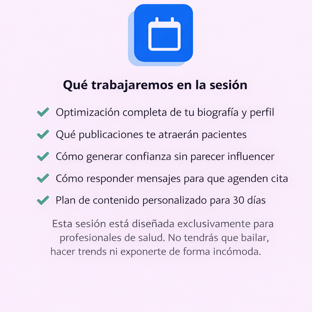 Saldrás de la sesión con un plan claro para empezar a recibir consultas desde redes sociales.